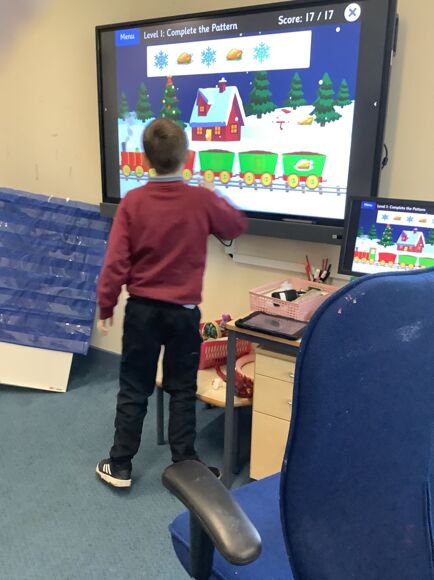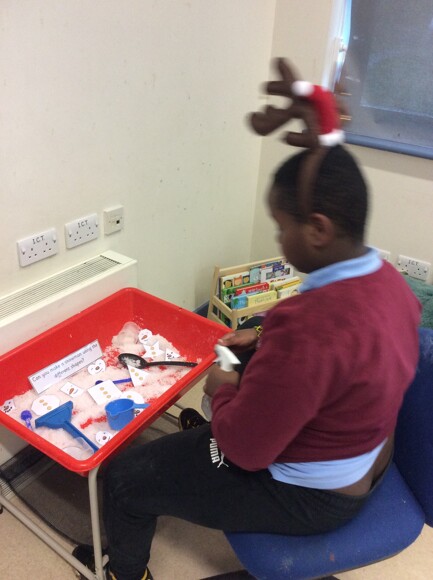 Class 16 have been preparing for Christmas this week with lots of different Christmas activities in our carousel. We enjoyed making Christmas cards and delivering them in our small world, working on our fine motor skills painting baubles on the Christmas trees with different tools. We loved making Christmas biscuits with different cutters and wrapping presents for different people. Class 16 were superb at decorating our room to make it look lovely and festive!