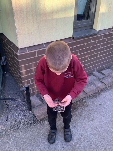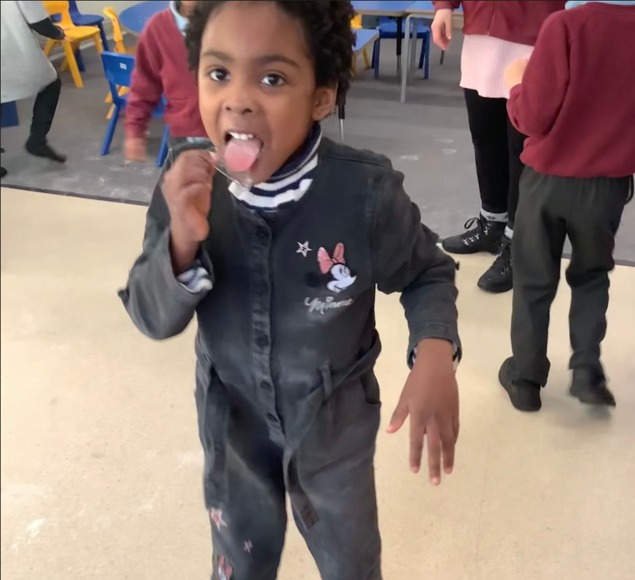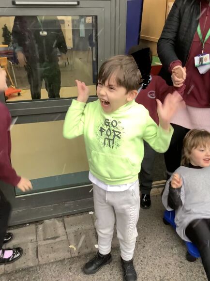 Class 4 have been using our senses to explore ice from our outdoor learning area. We touched, tasted and looked at the patterns on the ice. The children were very excited when it began to snow.