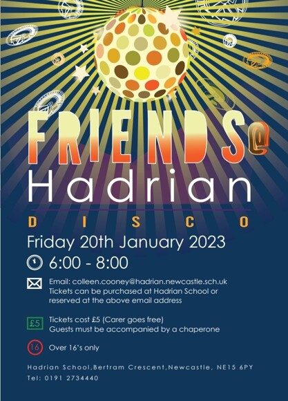 Hadrian School are excited to announce they are hosting their next Young Person (16+) Disco!