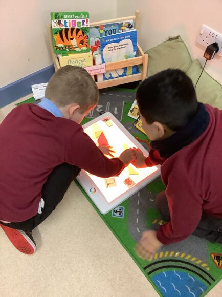 Class 16 loved learning all about colour changes this week. We understood how to identify cool and warm colours using a colour wheel and sorted them! We opened our own nail salon to find the perfect shade in our role play area and shared stories like the colour monster, brown bear and All Kinds of People. We showed great team work using the light box to create different sculptures and colours. Well done, Class 16!