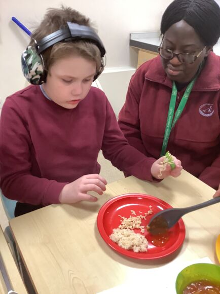 As part of enrichment this week Class 11 have been finding out all about Chinese New Year. We cooked some Chinese food in the cookery room. We tried noodles, rice, sweet and sour sauce and prawn crackers. Some of us even had seconds!