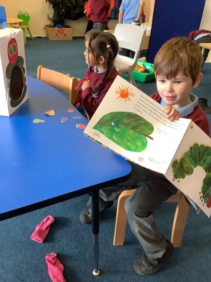 This week in Class A, we have had so much fun. We have been reading "The Very Hungry Caterpillar" story and have enjoyed feeding our own caterpillar some very yummy fruits. We have created some beautiful caterpillar and butterfly pictures using stencils and paintbrushes. We have continued to love outdoor play. Kirsty bought us a tent this week to help us feel what a cocoon might feel like, it’s so fun.