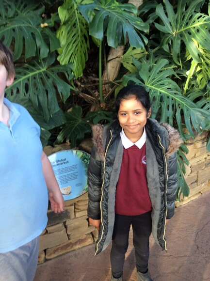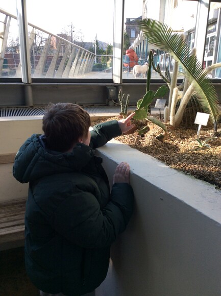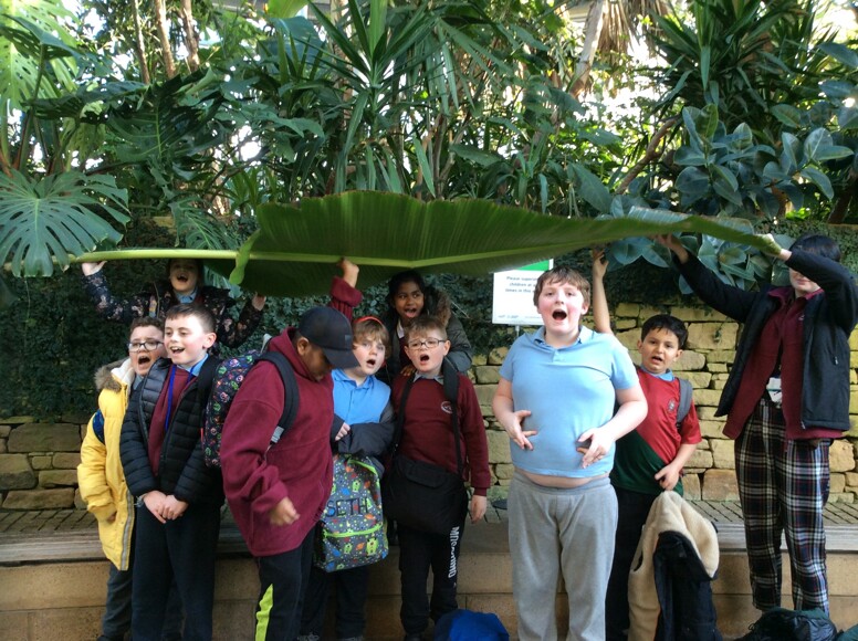 Class 18 have been learning about rainforests, and today we all visited Sunderland Museum and Winter Gardens to have a look at the different plants that can grow in a tropical climate. We held a big leaf from a banana tree and looked at Japanese koi fish swimming in a pond. After that, we looked around the museum and saw old fossils, skeletons, and animals, and then enjoyed playing in a nearby park.