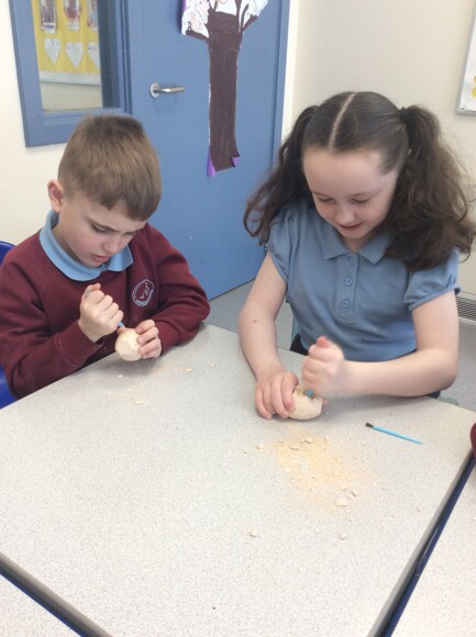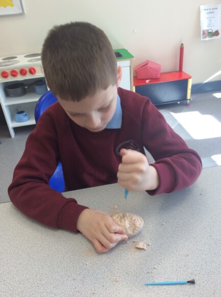 Class 8 have been learning all about fossils and dinosaur eggs. Yesterday, they all used tools to crack open their dinosaur eggs and dust off the dinosaur. The pupils were able to match the dinosaur to its picture to find out its name. They were all great at examining the different parts of the dinosaur and describing its features to their friends.
