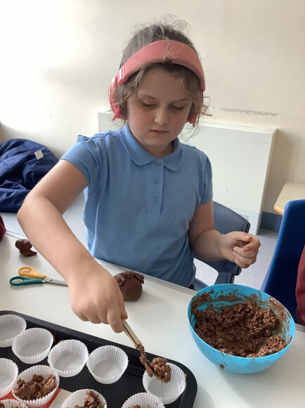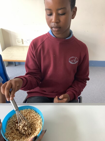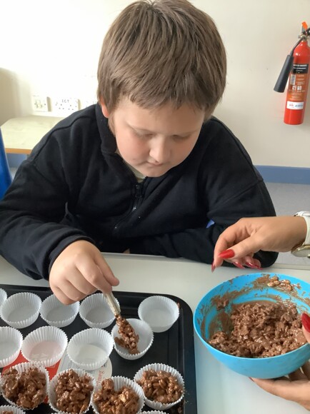 Last week, Class 17 enjoyed their first cookery session. The pupils had to follow a recipe to make some Rice Krispies cakes. Then they got to eat them!