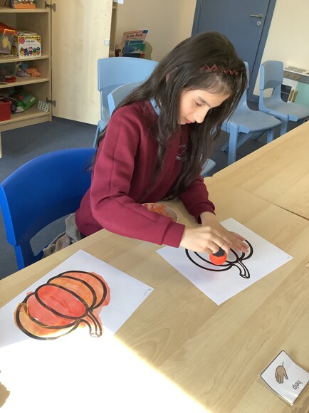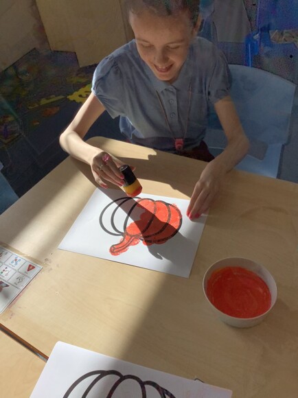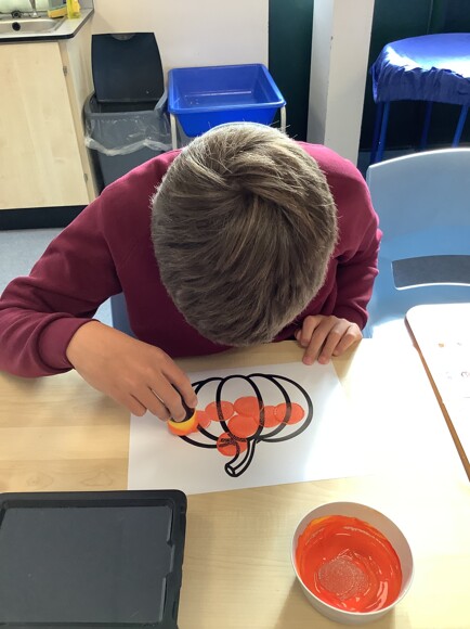 Class 21 celebrated Autumn in Culture and Enrichment by mixing their own orange paint and using it to paint a pumpkin.