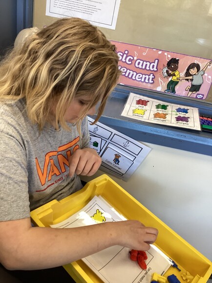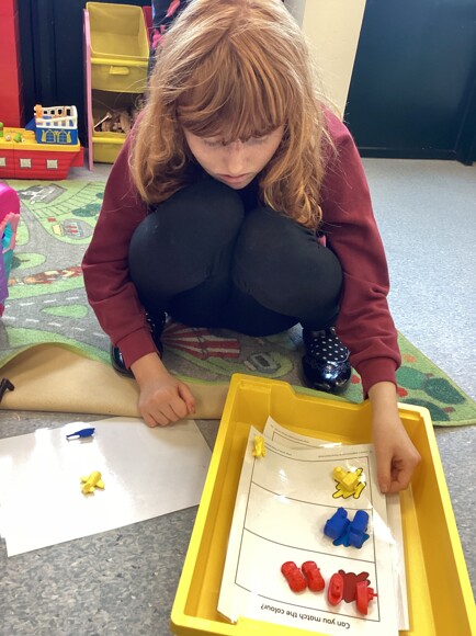 Class 25 enjoyed exploring colour during Engage and Explore time. They were looking at different coloured transport objects and put them into categories with a visual support.