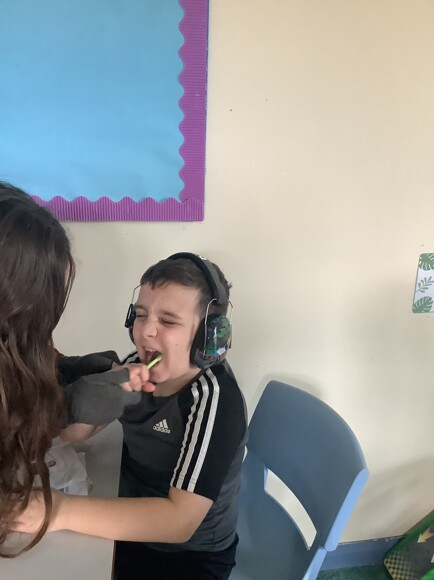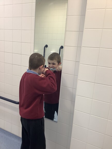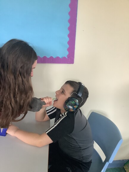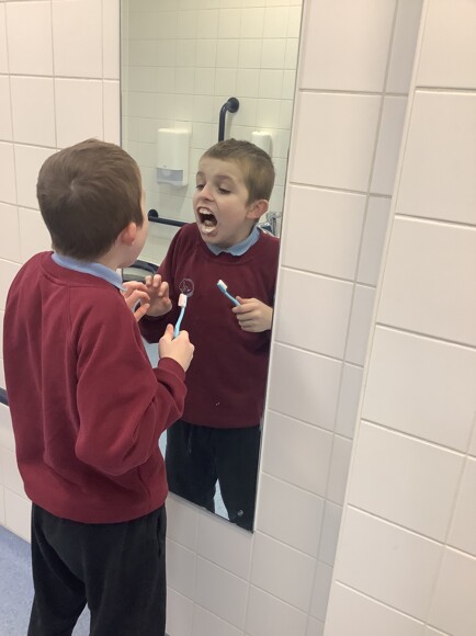 Class 25 has been learning about self-care and practiced brushing their teeth.
