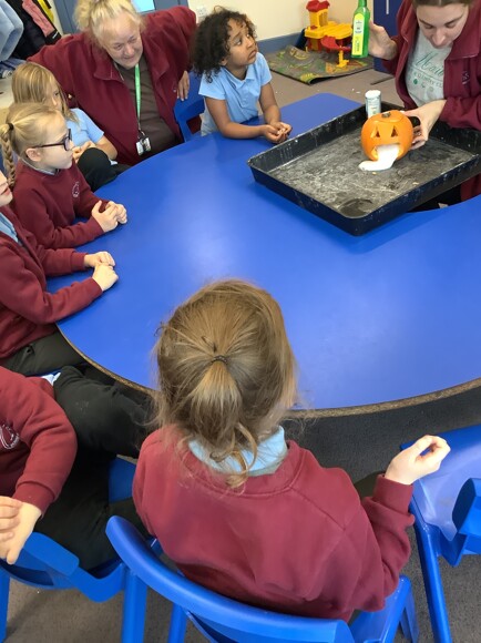 Class 6 had a spooky afternoon watching their pumpkin experiment.