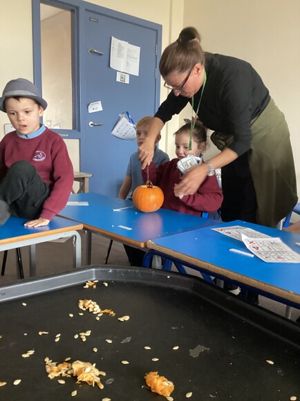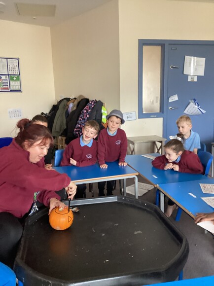 To celebrate Halloween, Class 5 had lots of fun doing lots of different Halloween-themed activities. The pupils carved a pumpkin, made ghost play dough, made bubbling cauldrons, explored pumpkins seeds. and had a Halloween tea party.
