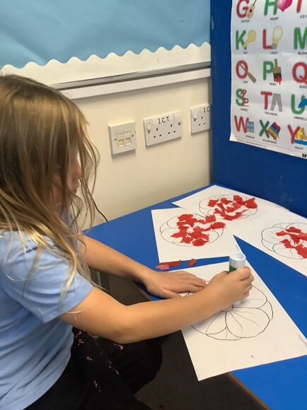 Class 6 had a lovely afternoon celebrating Remembrance Day. The pupils made some poppy biscuits and a poppy picture.