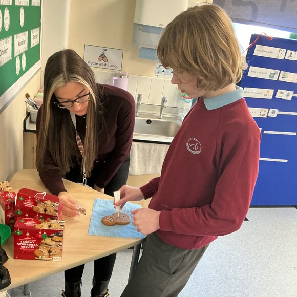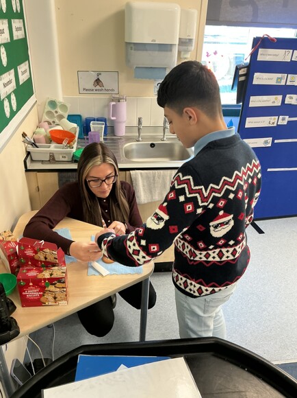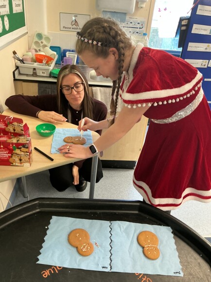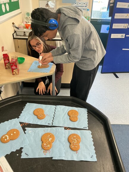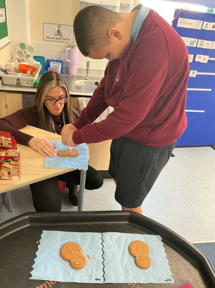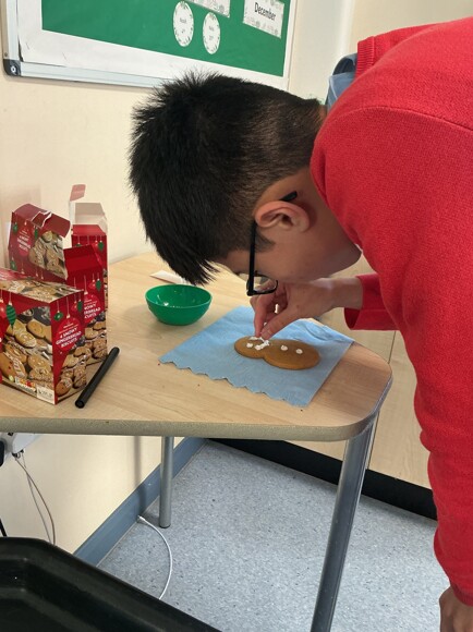 One of the pupils in Class 23 brought in some Christmas gingerbread biscuits to share with the class. The pupils enjoyed decorating their gingerbread men and then eating them for snack.