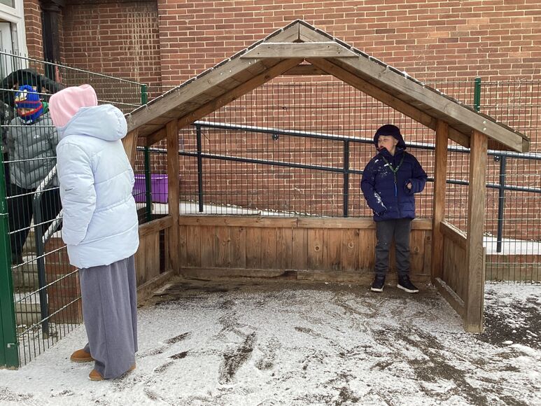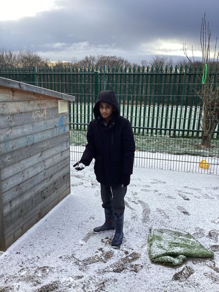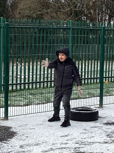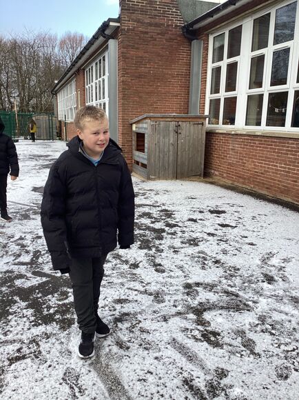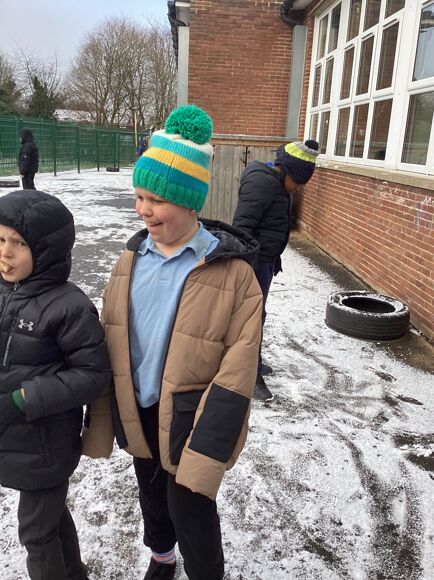 Class B had lots of fun this week playing in the snow. The pupils enjoyed picking up the snow in their hands and throwing it up in the air and watching it fall down. Holding the snow in their hands felt cold, so they rubbed their hands together to keep warm.