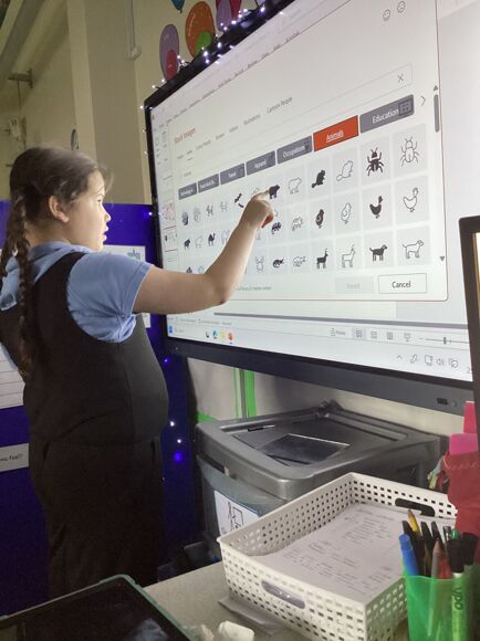 In Computing, The pupils enjoyed exploring different ways adding icons onto a PowerPoint. They chose their own icons and inserted them onto a PowerPoint.