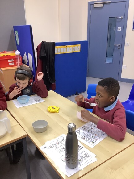 Class 17 made some porridge bowls for this week's story, 'Goldilocks and the Three Bears'. The pupils chose which sauce and toppings they would like.