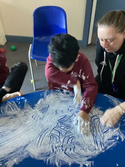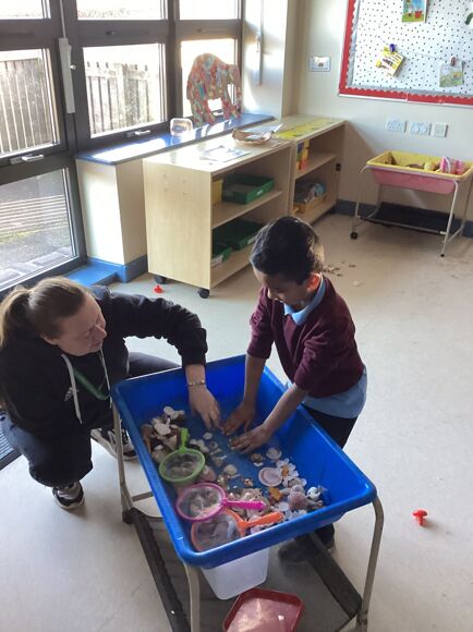 The pupils loved engaging with the reading corner, with a class favourite being 'We're Going on a Bear Hunt'. Most of all, they love exploring the sand and water trays.