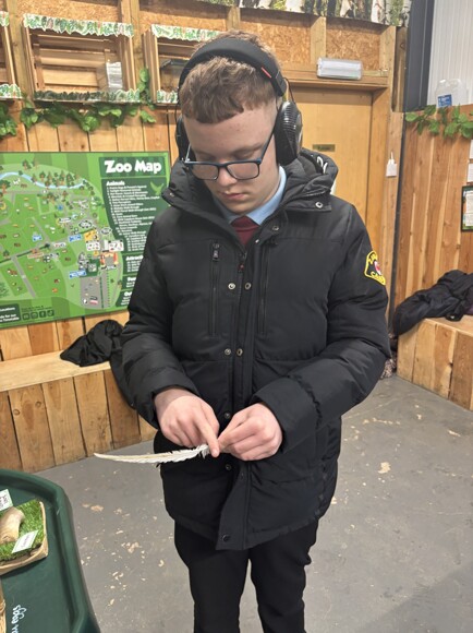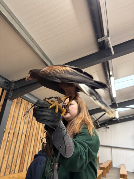As part of Class 24's topic 'Paws, Claws and Whiskers', the pupils visited Northumberland Zoo. They explored animal adaptations in a workshop filled with quills, feathers, and insects. Then, they had their own private birds of prey display with Ron the hawk and Derrick the owl.