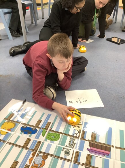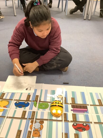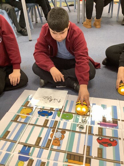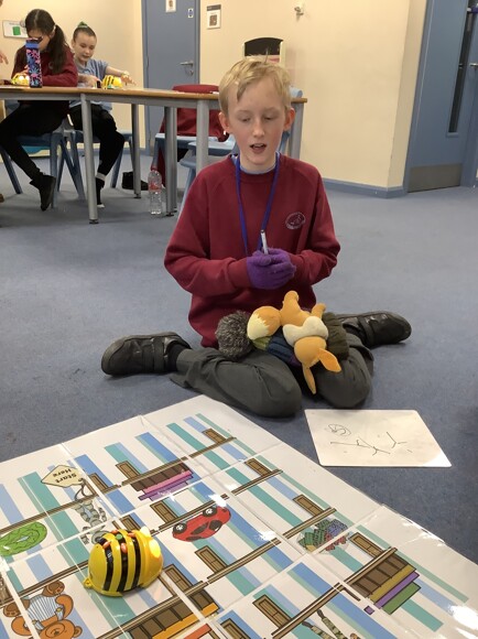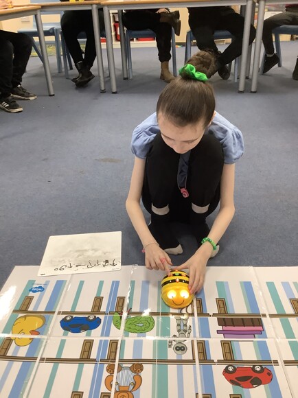 In Computing, the pupils coded the bee bots to arrive at their favourite toy.