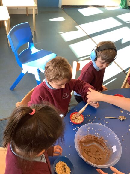 Last week we made our own krispy cakes. We were able to mix together the chocolate and Rice Krisipes. We then let them chill and tried them at snack time! Yum.