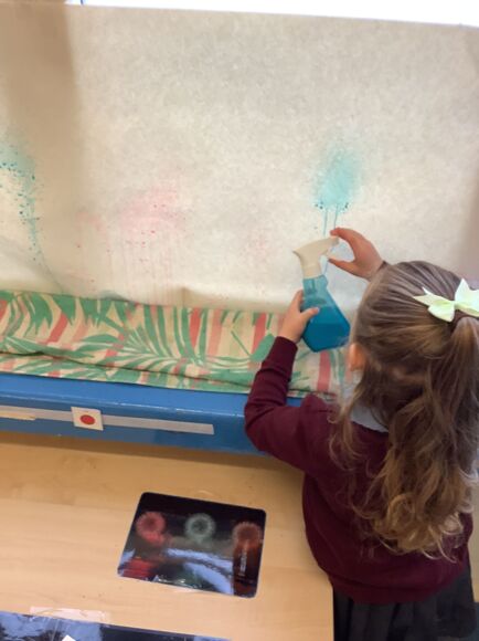 Broadwood A had a fantastic week celebrating Bonfire Night. We used water sprays to make our own firework display and used chalks to draw different firework shapes. We made some fantastic shape rockets and matched our numicon to the corresponding firework themed number. We also were able to fill and empty plastic bottles to make our own firework themed sensory bottles. What a super week of learning!