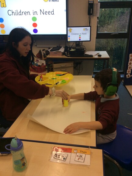 Class 16 have started off Children In Need Week by completing lots of activities for Pudsey. Children in our role play area had a tea party to raise funds for Children in Need, making sure to share out the cake and cups equally. In the sand they needed to find and sort Pudsey’s spots by colour using the tweezers. In the tuff tray, we needed to free Pudsey and Blush from all of the different materials; jelly, ice and custard! We recognised other people’s emotions by matching them and used our fantastic phonics skills to find items and match them to the sounds on Pudsey’s belly. We also loved making Pudsey Spots using different materials. We are so excited for our Children in Need disco on Friday!