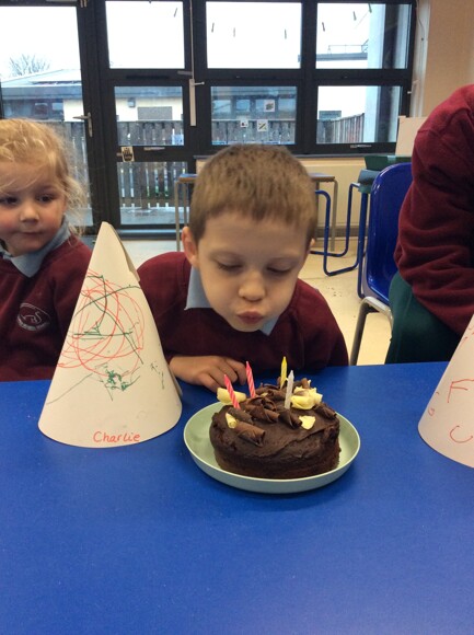Last week, Class 4 were learning all about Birthdays as part of their Celebrations topic. The children enjoyed making cupcakes out of play dough and singing ‘Happy Birthday’ to each other. They also practised their cutting and sticking skills while making birthday cards and hats for their friend’s birthday.