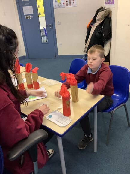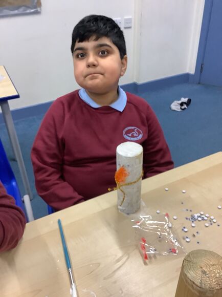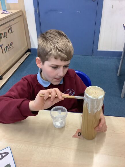 Class 16 have been busy during Enterprise Week! They designed and created Christmas decorations made out of natural materials. They worked hard choosing which colour glitter and ribbon to use. Class 16 practised being safe when using a saw with a grown up to choose the size of their reindeer logs. We are so excited for everyone to see them at the fayre!