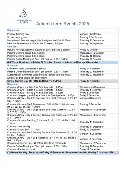 - Autumn Term Events